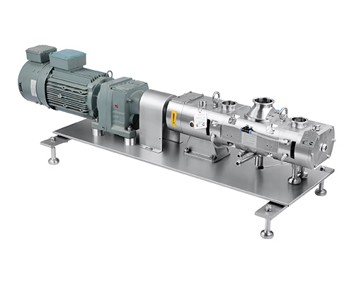 SAN PUMP Twin-screw pump has self-priming ability and can transport various complex conditions such as solid particles, gas-liquid mixture, high viscosity, low viscosity and material transportation and extraction; it not only used for material extraction and Conveying, also applicable to CIP and SIP systems, it can reduce pipeline, valve control, CIP dedicated pumps, Not only improve efficiency but also reduces costs. The pump also has the performance that other volumetric pumps do not have, such as no pulse phenomenon, no damage to particles, high pressure, speed range and large flow range.