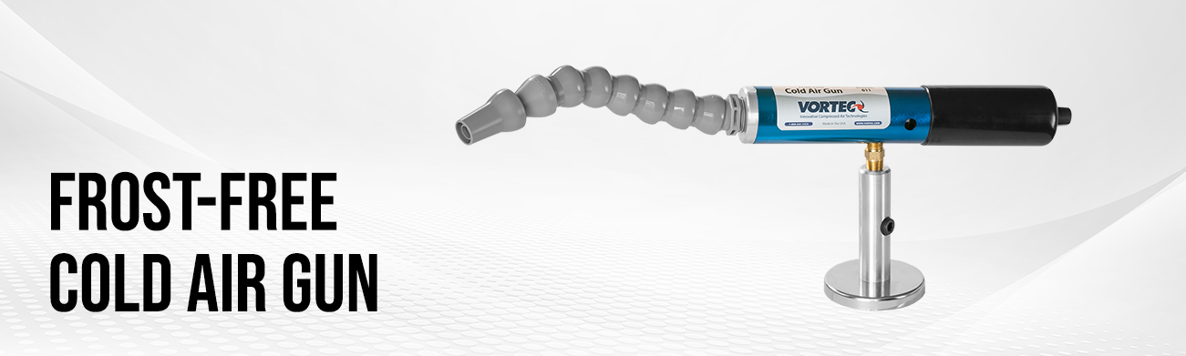 Vortec Frost-Free Cold Air Guns use vortex tube technology and filtered compressed air to produce